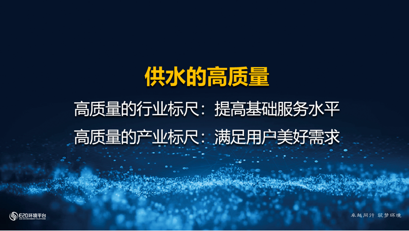 2012年,供水服务促进联盟成立,明确提出供水行业要高质量发展。而曾经的高质量阶段,主要聚焦于水质,如今的高质量发展的内容更加的全面和丰满。