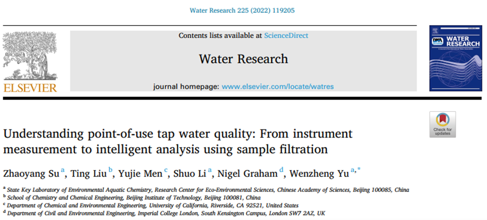 近日,中国科学院生态环境研究中心俞文正课题组在Water Research上发表了题为“Understanding point-of-use tap water quality: From instrument measurementto intelligent analysis using sample filtration”的研究论文(DOI: 10.1016/j.watres.2022.119205),在我国某一线城市的8个不同区域对家庭终端自来水进行采样研究,揭示了建筑给水管路老化程度对自来水水质的影响,开发了基于图像识别的滤膜分析技术,有望为及时了解管路老化程度提供简便易行的方法。
