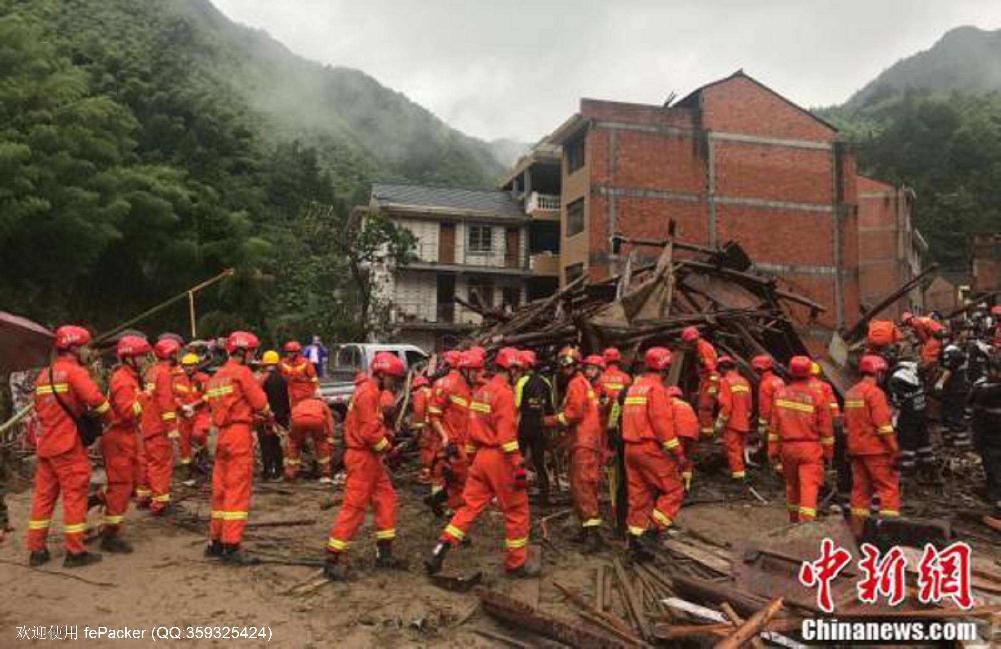 8月10日,众多救援人员在受灾现场开展救援。当日凌晨,受今年第9号台风“利奇马”影响,浙江省温州市永嘉县岩坦镇山早村降特大暴雨引发山体滑坡堵塞河流,形成堰塞湖并决口,致18人遇难14人失联,当地消防、武警、公安等紧急开展救援。中新社记者 任益 摄