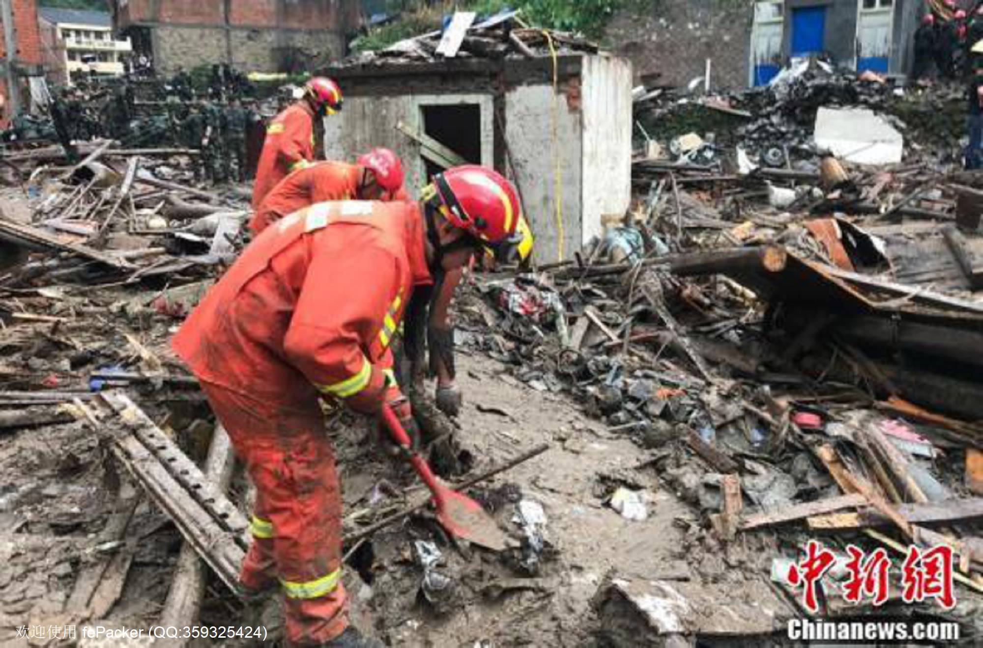 众多参与救援人员在受灾现场开展搜救。中新社记者 任益 摄