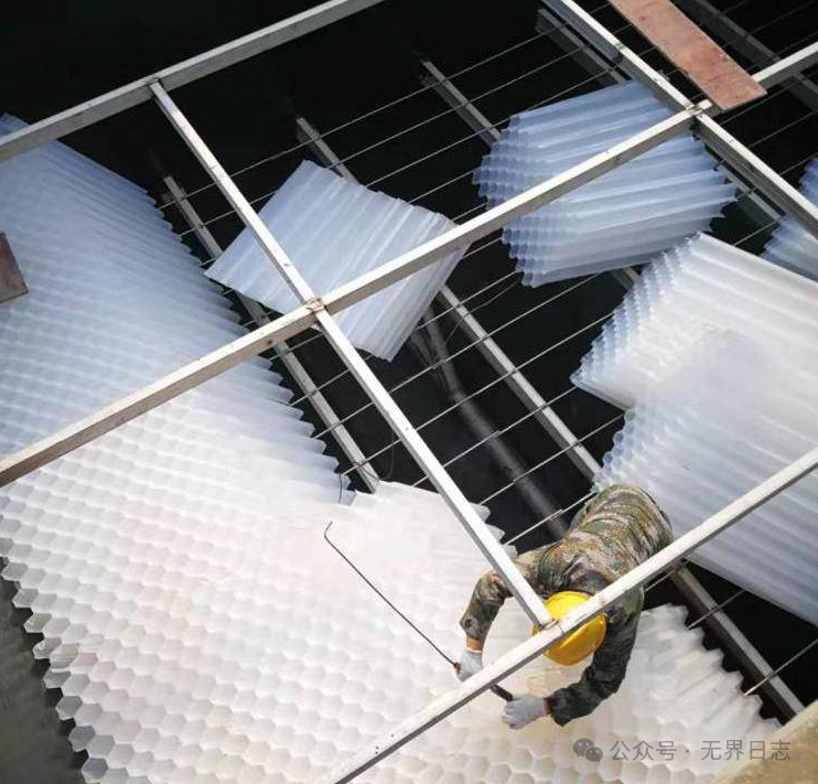 浑浊的原水经过混凝反应后,涌入这个由无数六边形"蜂巢"组成的净化装置。